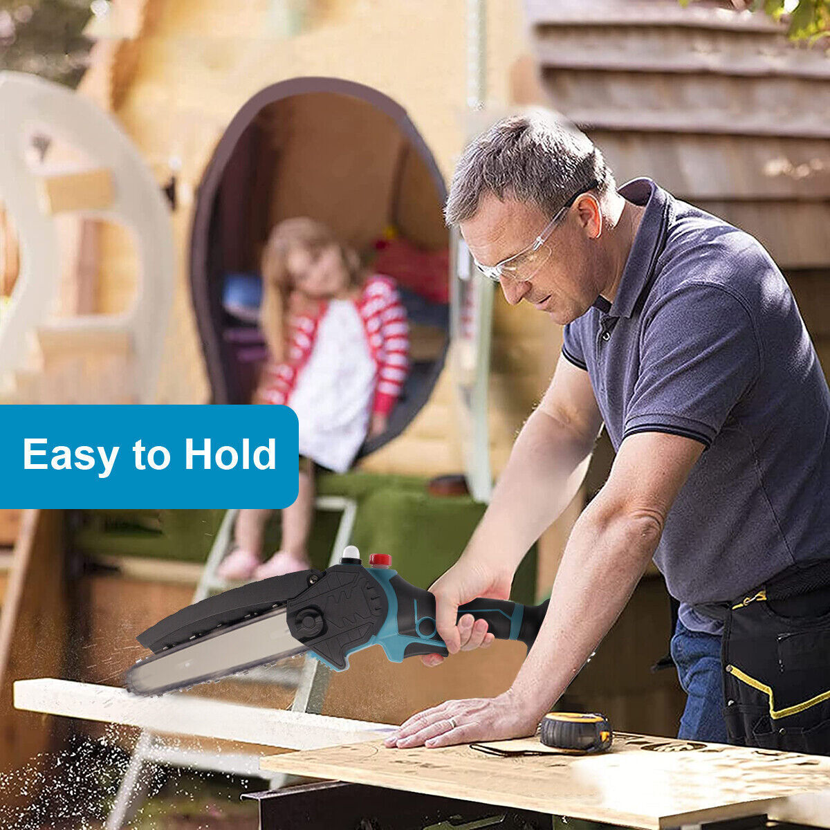 2 Batteries 6'' 4000W Mini Cordless Chainsaw Electric One-Hand Saw Wood Cutter